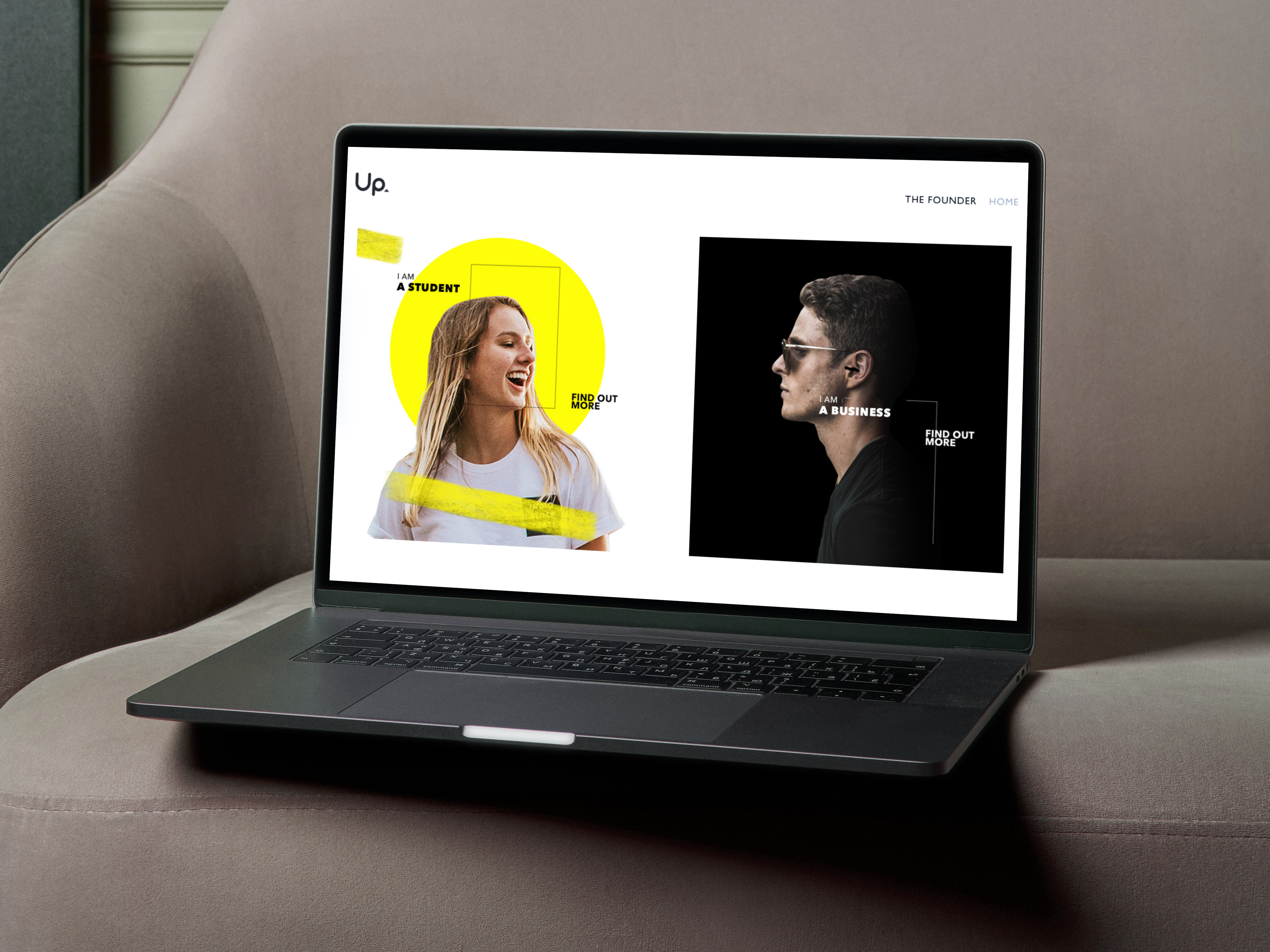 In response to a client request, Aleena, I have been tasked with designing a website named UniPrize. The primary objective of this website is to facilitate the entry of students into the workforce, particularly in the creative industry, and to provide platforms for businesses to collaborate with young talent on projects that align with their interests. Aleena has requested that the design for the section dedicated to students and businesses be distinct, yet maintain a cohesive overall appearance for the website.