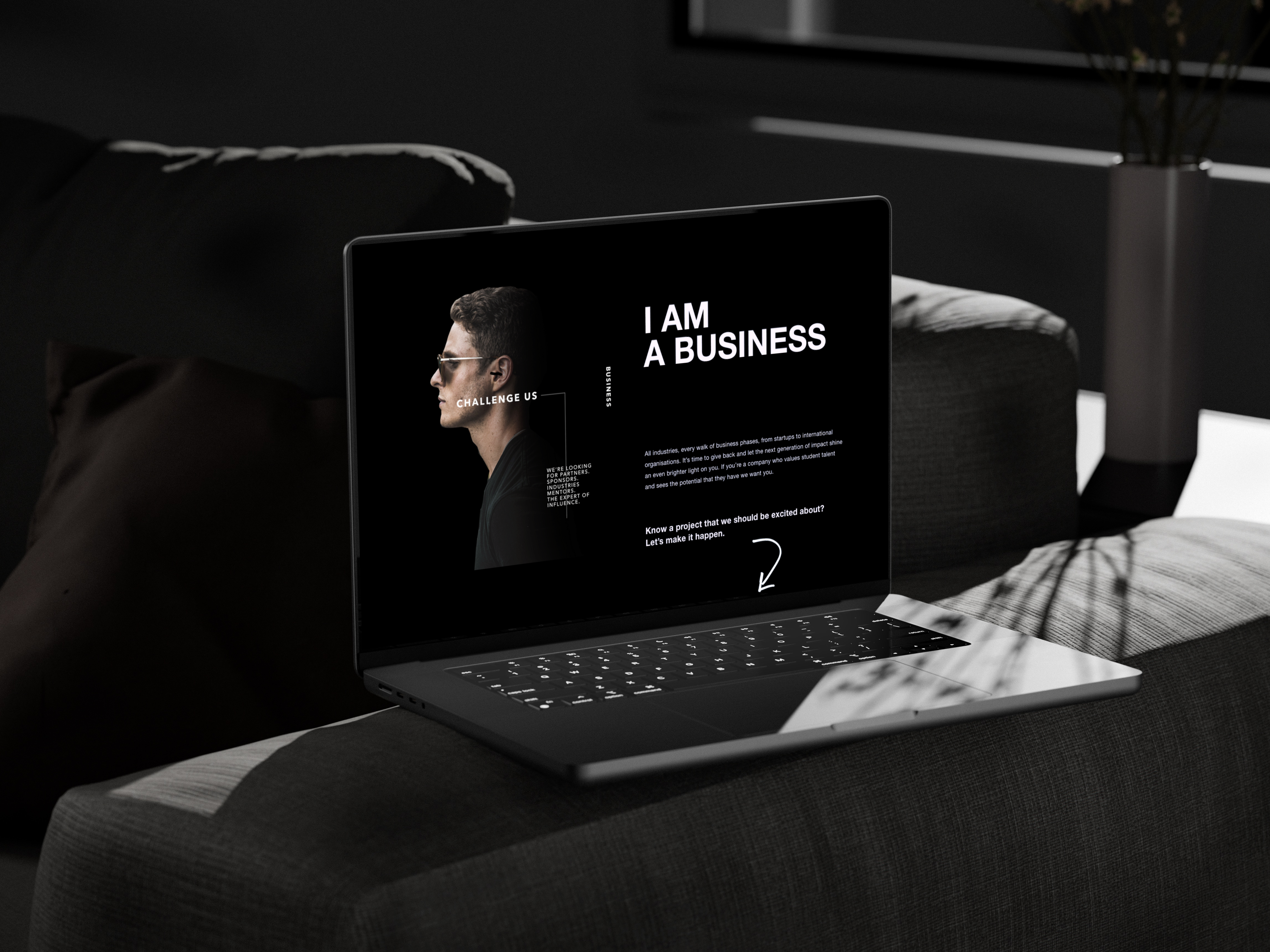 The website’s design will be structured into two distinct sections: Business and Student. To ensure a cohesive and unified appearance despite these divisions, we have chosen to utilize complementary colors: black for the business section, which conveys professionalism, cleanliness, and sophistication; and yellow for the student section, which symbolizes brightness, dynamism, and the vibrant minds of young talent. Additionally, we have incorporated various rectangular shape strokes to further enhance the sense of unity.